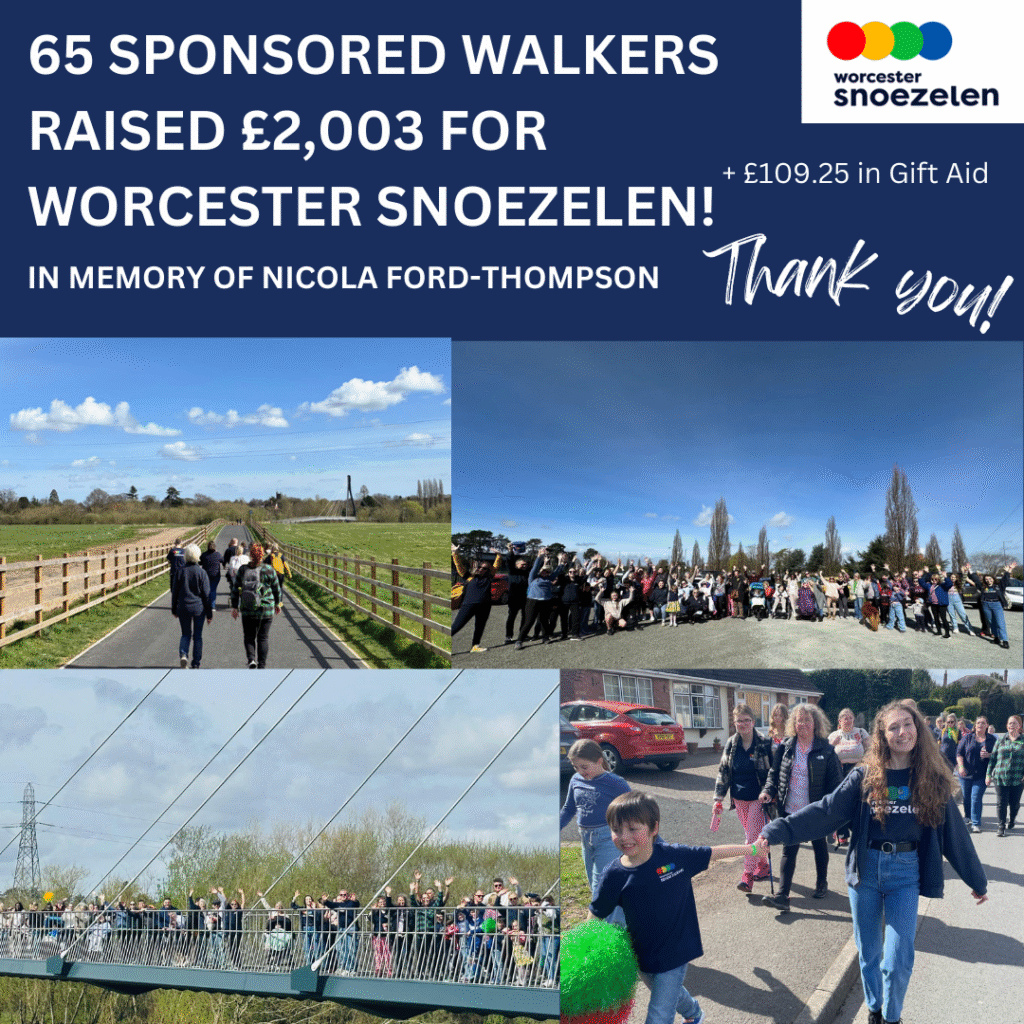 We would like to thank everybody who turned up to celebrate the life of Nicola Ford-Thompson as 65 Sponsored walkers raised £2,003 in her memory. Everybody had a fantastic time walking in the sunny weather as we walked 5km over the new river bridge and back along the river to Snoezelen.