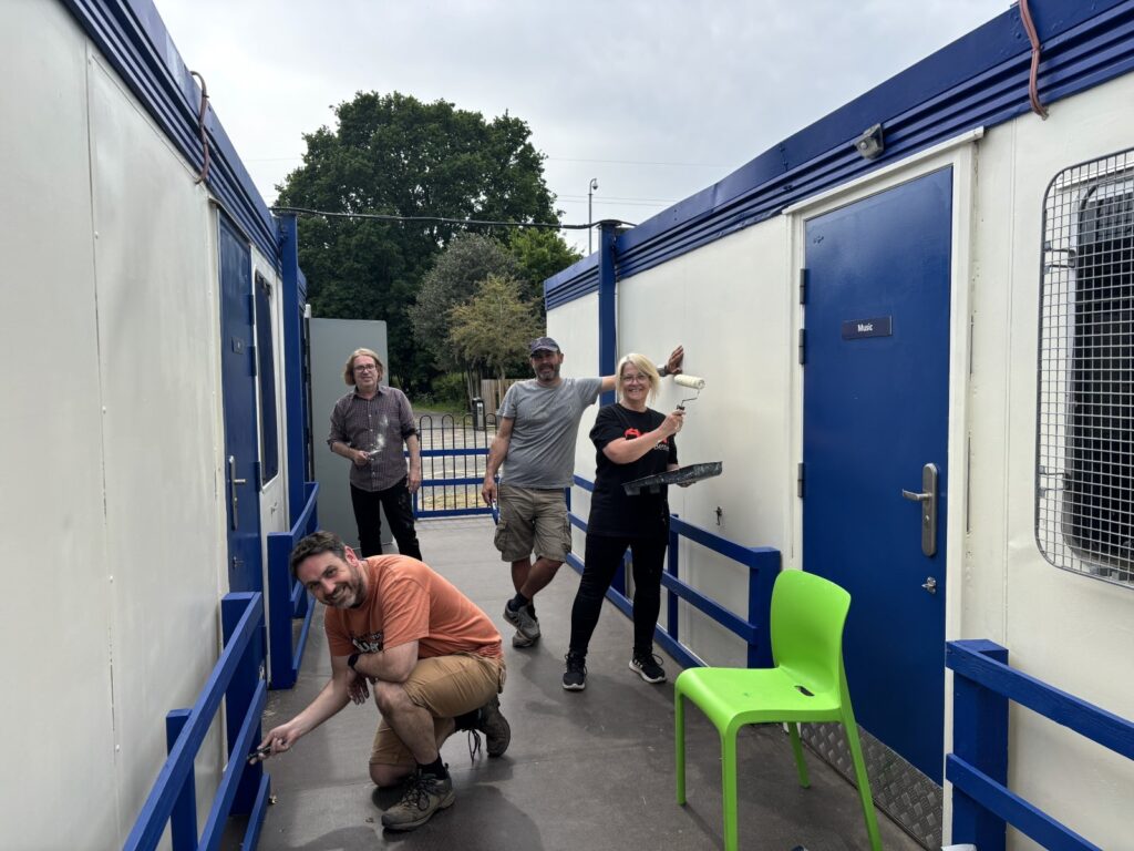 Having survived their move to their new location at the front of the centre in September 2024, our portacabins for music, art, yoga and our office team needed a bit of TLC. AkzoNobel kindly offered their services to source and donate the paint needed for this project, giving us the specific paint for the material of the cabins to ensure longevity. The staff from the Delux Distribution Centre were also incredibly helpful in helping is get ready for the project, personally delivering the materials up to the centre!